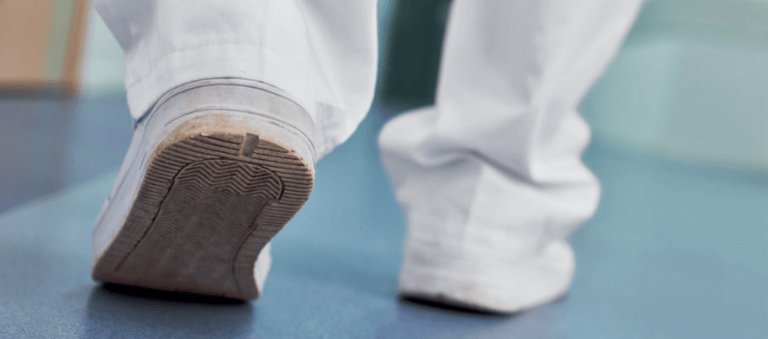 Am Apothekentresen ist das schwierig. Wie kann ich dort mit den Folgen des vielen Stehens umgehen? Wenn ich Schmerzen dadurch habe, immer an der gleichen Stelle zu stehen, kann ich mir genau an diese Stelle eine Weichschaummatte legen, das entlastet die Fußmuskulatur. Wenn ich stattdessen im Krankenhaus viel auf den Beinen bin, ist es wichtig, die richtigen Schuhe zu tragen.